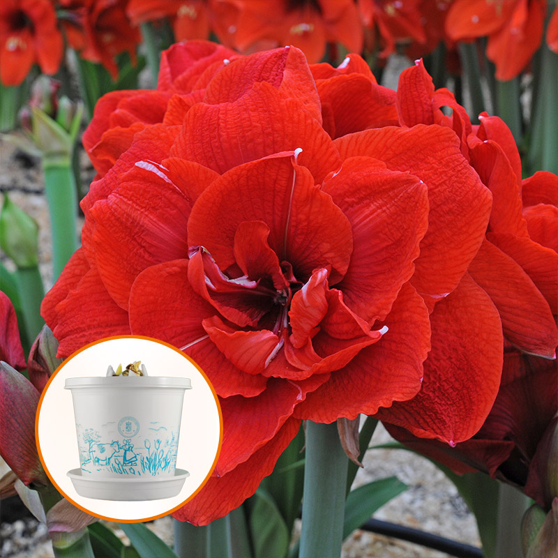 Deze amaryllis Marylin® is al gepot en wordt geleverd in een mooie geschenkverpakking. Zo kun je jezelf of anderen verwennen zonder je handen vuil te maken.