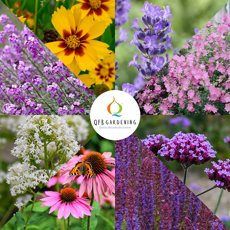 Ce magnifique parterre de plantes vivaces "Jardin des papillons" est un superbe mélange de huit plantes vivaces pour les abeilles et les papillons, dont la floraison vous ravira pendant des années en été. Vous trouverez dans ce paquet le mélange parfait pour chaque jardin, qui fournira suffisamment de nourriture aux papillons, abeilles et autres insectes. Les plantes mellifères ne sont pas seulement bénéfiques pour l'environnement, elles sont également un véritable plaisir pour les yeux grâce à leurs superbes fleurs et leurs couleurs vives. Votre mélange de plantes vivaces mellifères vous réjouira de mai à septembre avec de nouvelles fleurs. Non seulement les fleurs reviendront chaque année, mais elles seront aussi plus abondantes et plus généreuses d'année en année. Pour cette plate-bande de plantes vivaces, des plantes favorables aux papillons et aux abeilles ont été combinées à partir de différents groupes de hauteur afin de créer une image de plate-bande de plantes vivaces particulièrement vivante. Ce mélange de plantes vivaces est résistant au froid et se plante volontiers dans un endroit ensoleillé ou semi-ombragé.