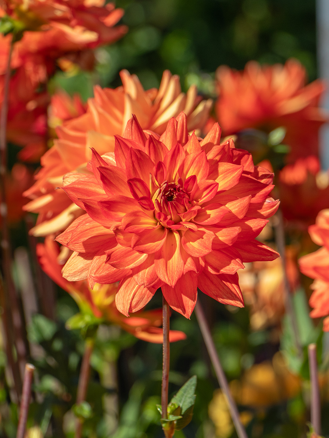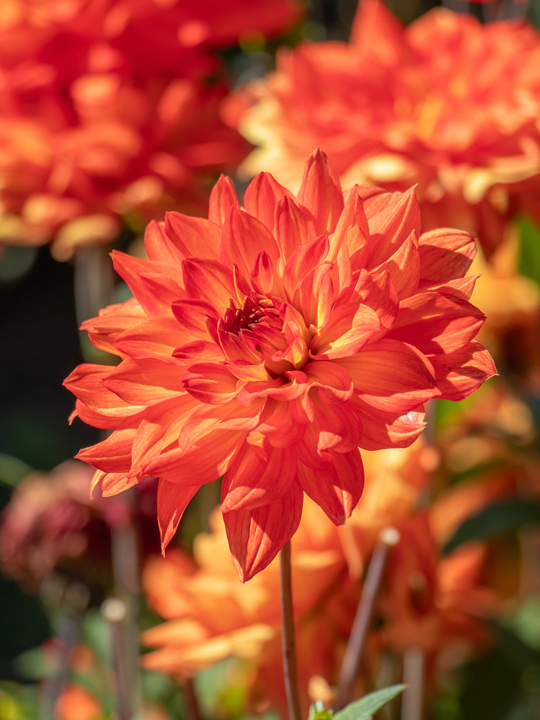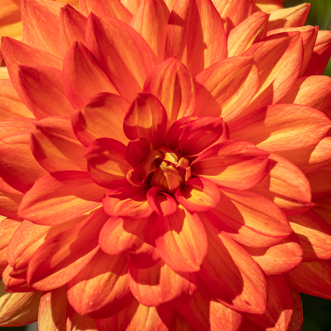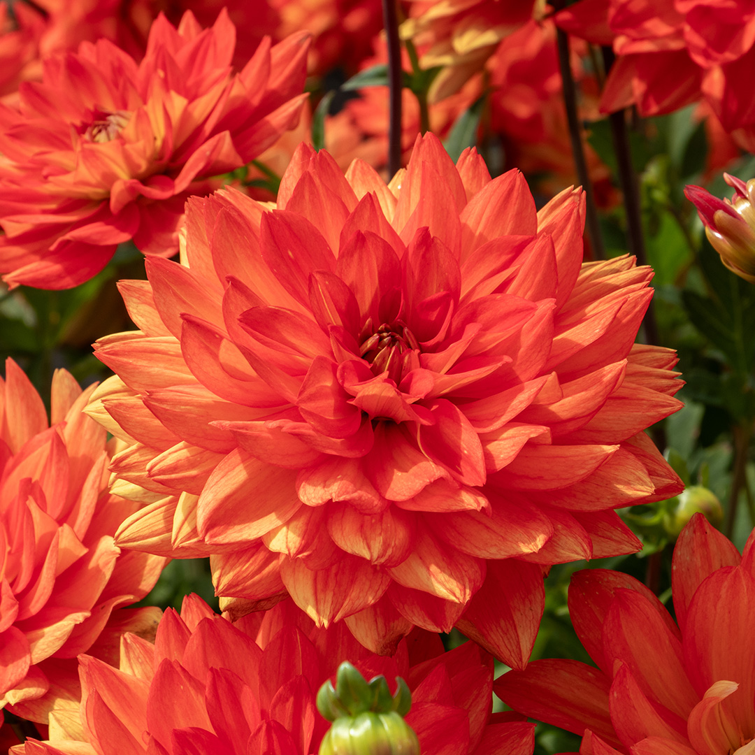 Le dahlia "Karma Fiesta®" est une plante très colorée avec de magnifiques fleurs bicolores. Le jeu de couleurs d'un orange jaune clair qui devient de plus en plus clair vers le centre, qui lui donne un charme unique. Les dahlias Karma sont connus pour leurs longues tiges et leurs fleurs de longue durée. Avec ses grandes fleurs entièrement doubles, il attire l'attention dans le jardin ou les parterres de fleurs, mais aussi comme fleur coupée pour la maison. "Karma Fiesta®" pousse jusqu'à une hauteur respectable de 120 cm et fleurit tout l'été, jusqu'aux premières gelées. Celui qui cherche un dahlia décoratif particulier avec un jeu de couleurs frappant sera définitivement satisfait de ce dahlia Karma.