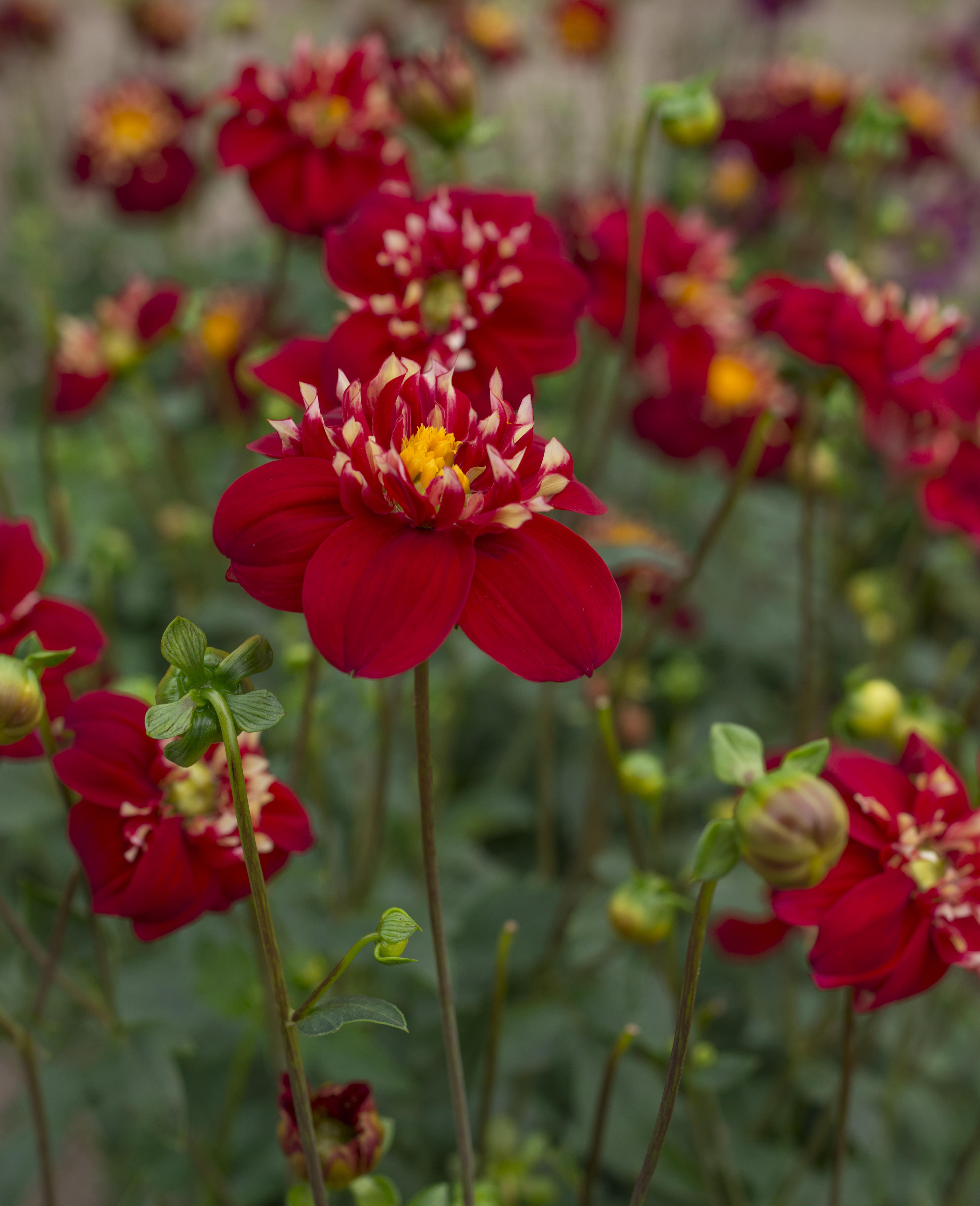 De hoogte van deze rode Halskraag Dahlia zal ongeveer tussen de 40 en 50 cm worden en zet haar maar lekker in de volle zon. Heerlijk toch dat je vanaf juli tot eind oktober kan genieten van deze aantrekkelijke bloemen? Een tuin vol met deze waanzinnige Dahlia’s en bijvoorbeeld de mooie Dahlia Pennylane die je tuin sfeer, kleur, en vorm zullen geven.