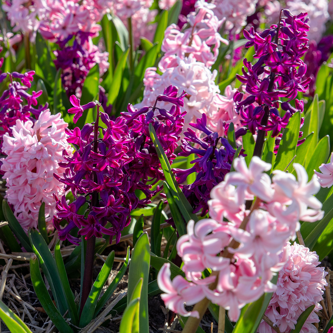 Ce mélange de jacinthes roses, merveilleusement parfumé et coloré, est un ajout joyeux au jardin de printemps. Les jacinthes ne sont pas seulement de bonnes plantes de jardin, elles sont aussi d'excellentes plantes en pot. Pendant les mois d'hiver, vous pouvez forcer les bulbes dans des pots à l'intérieur pour faire entrer le printemps dans votre maison. Ce mélange de jacinthes roses peut être planté dans différents types de jardins. Des plates-bandes aux bordures, en passant par les pots et les conteneurs, séparément ou ensemble. De plus, elles sentent merveilleusement bon et annoncent abondamment le printemps !