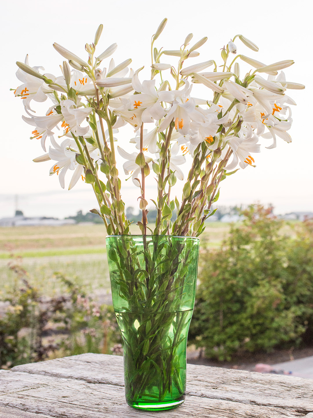 Il mesure jusqu'à un mètre de haut, avec une tige pleine de grandes fleurs délicieusement parfumées au miel. Les fleurs sont blanches, avec un pistil et des étamines bien visibles au centre jaune. Ce lis aime les endroits ensoleillés, mais la mi-ombre est également tolérée.
